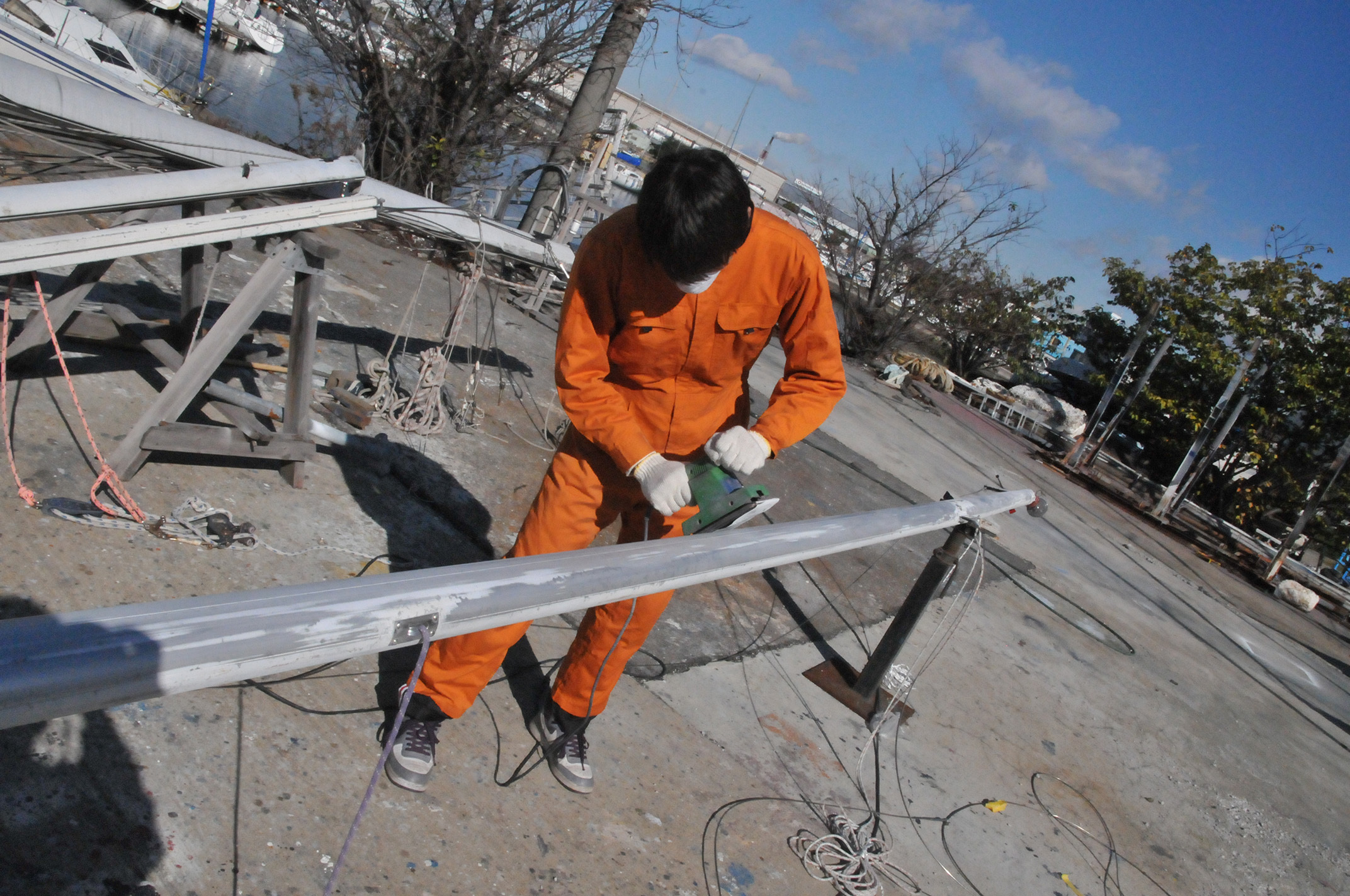 2013年 IDATEN誕生 2013年から2019年まで堺出島ヨットハーバーでJ24を所有し、セーリング活動をしていました。IDATEN誕生までの記録です。 輸送されてきました 船台に載せられました マストの最初の状態 マストの最初の状態 最初のエンジン ウォーターボックス 船首下の船内 船内 マストの塗装を一度取ります 塗装を取りました 塗装を取りました マストトップの調整 白で塗装 白を塗装 塗装後マストを戻します 試走 堺の沖まで出てきもちいい 楽しいです バックステイの長さ調整 バックステイの長さの調整 MEMORYに戻る。