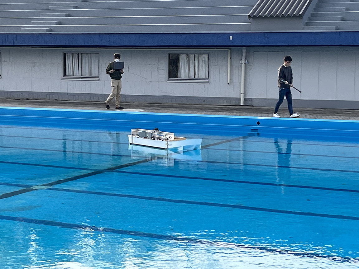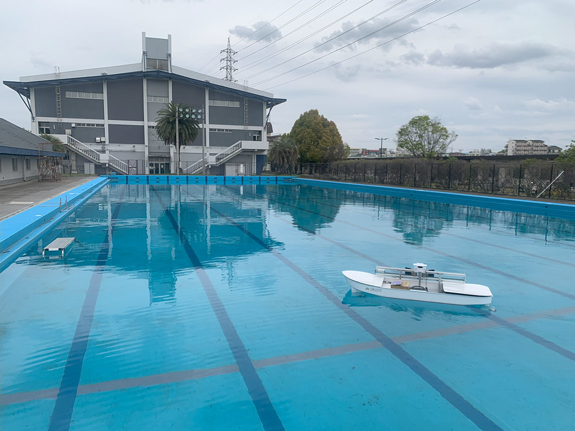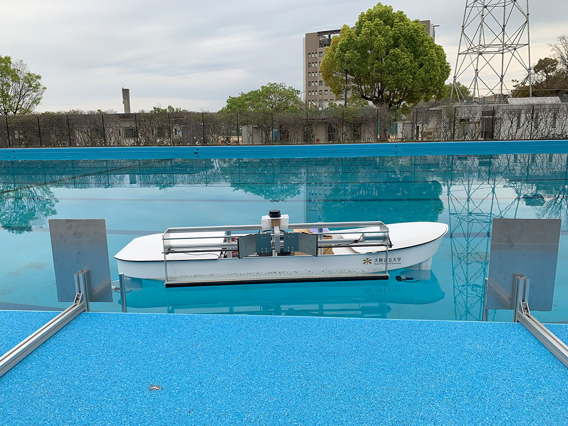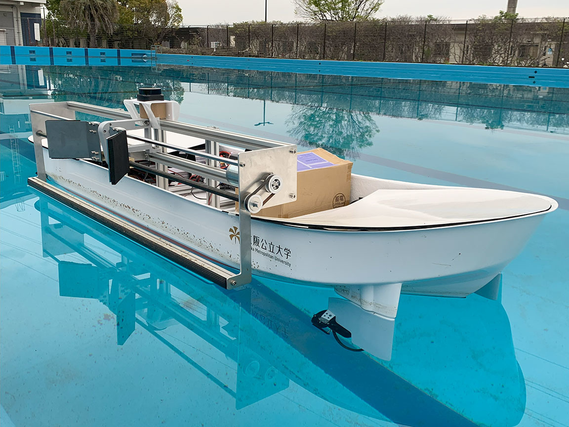 2023年3月ー4月 ロボット漁船の研究開発 2023年3月-4月にかけてロボット漁船の要素技術確立の為の試験が行われました。本プロジェクトは、大阪公立大学ホームページにて紹介されています。 自動係船手法の確立 餌補給手法の確立 ストラットの回転装置の確立 が行われました。 ロボット漁船 自動航行試験 航行試験 着岸点を目指して航行 着岸点を目指して航行 餌補給装置ノズル 可動装置 餌 MEMORYに戻る。