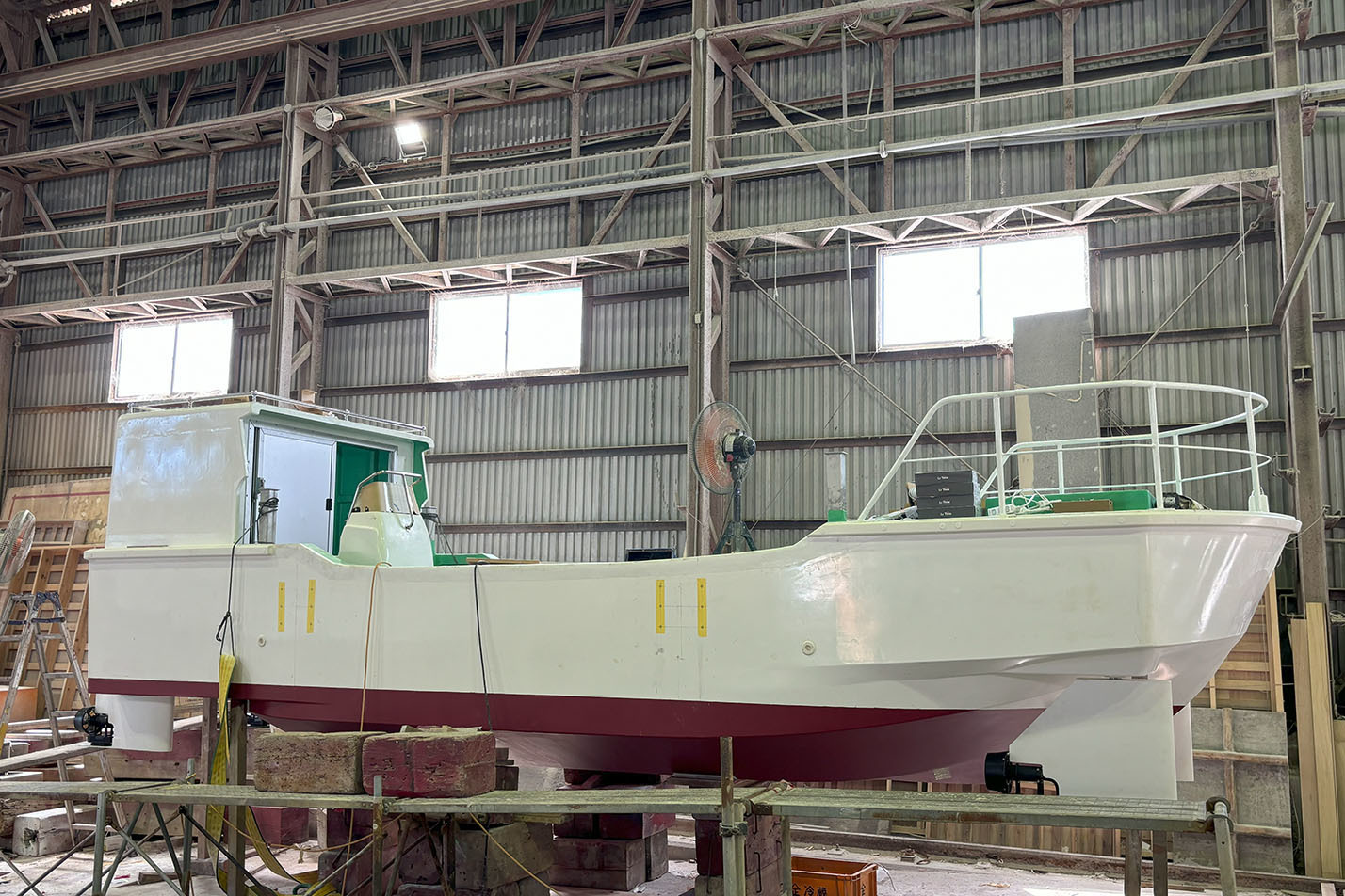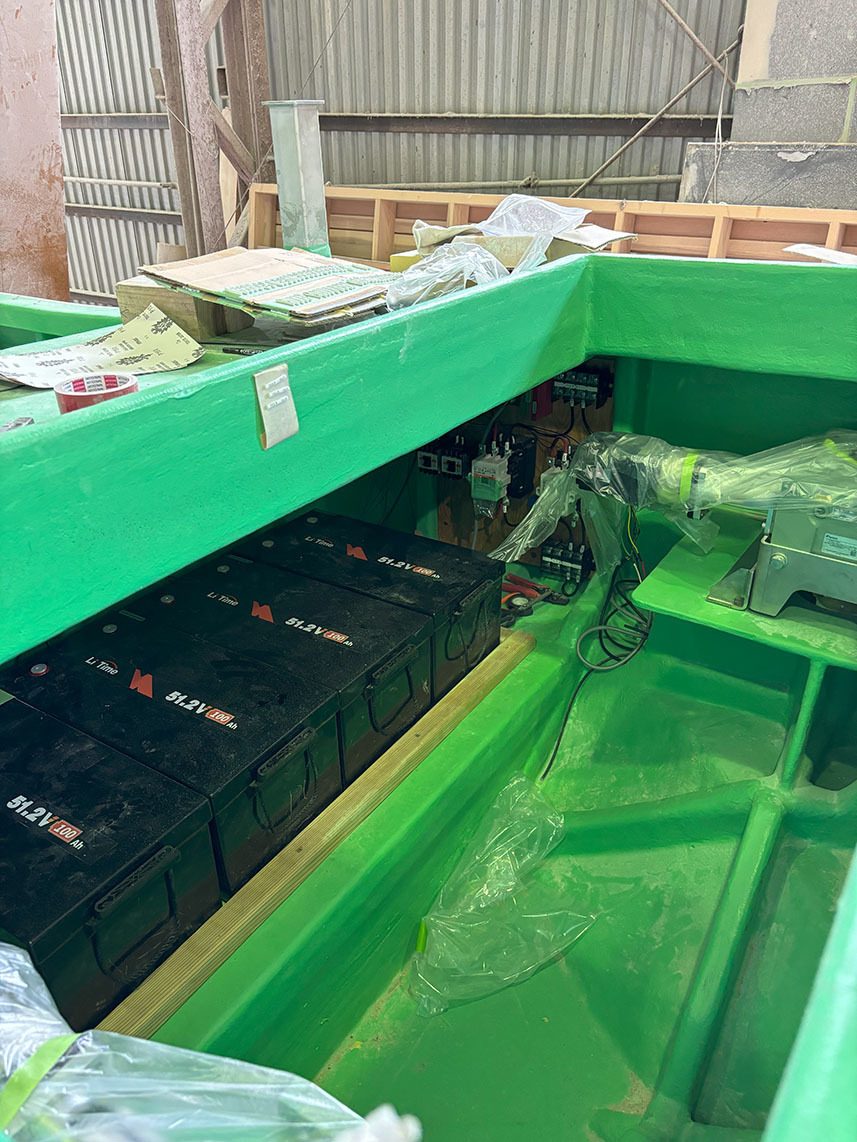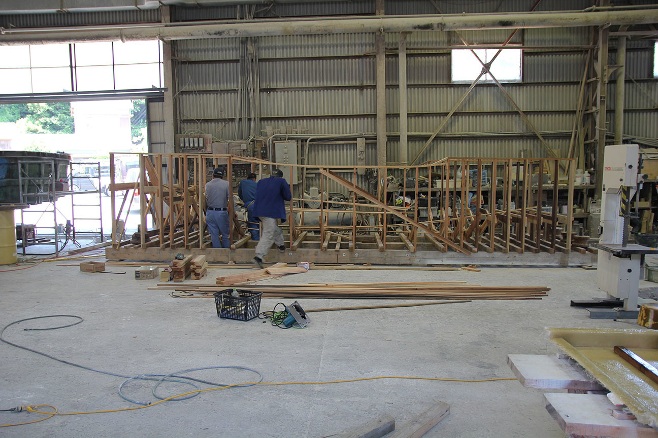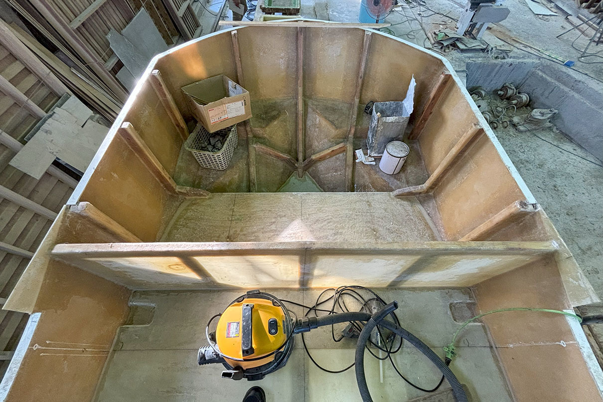 2024年 ロボット漁船7m実証機 -Robo Sailing ZERO- の製造 きりゅう造船にて製造 型製造中 型製造中 ゲルコート ゲルコート塗付 ゲルコート塗付 積層 積層 積層 脱型 脱型 脱型 内装 餌箱 内装 ストラット ストラット ストラット バッテリー デッキ 操舵機 スラスター Robo Sailing ZERO MEMORYに戻る。