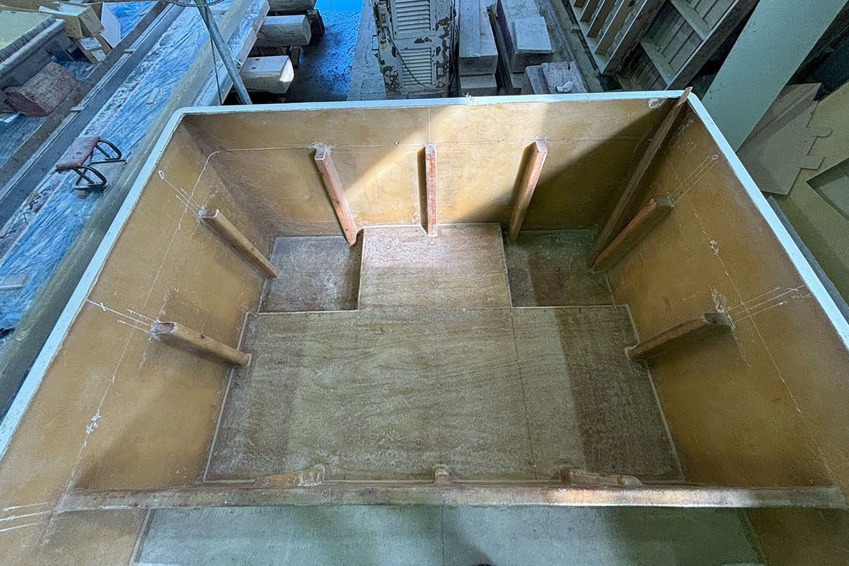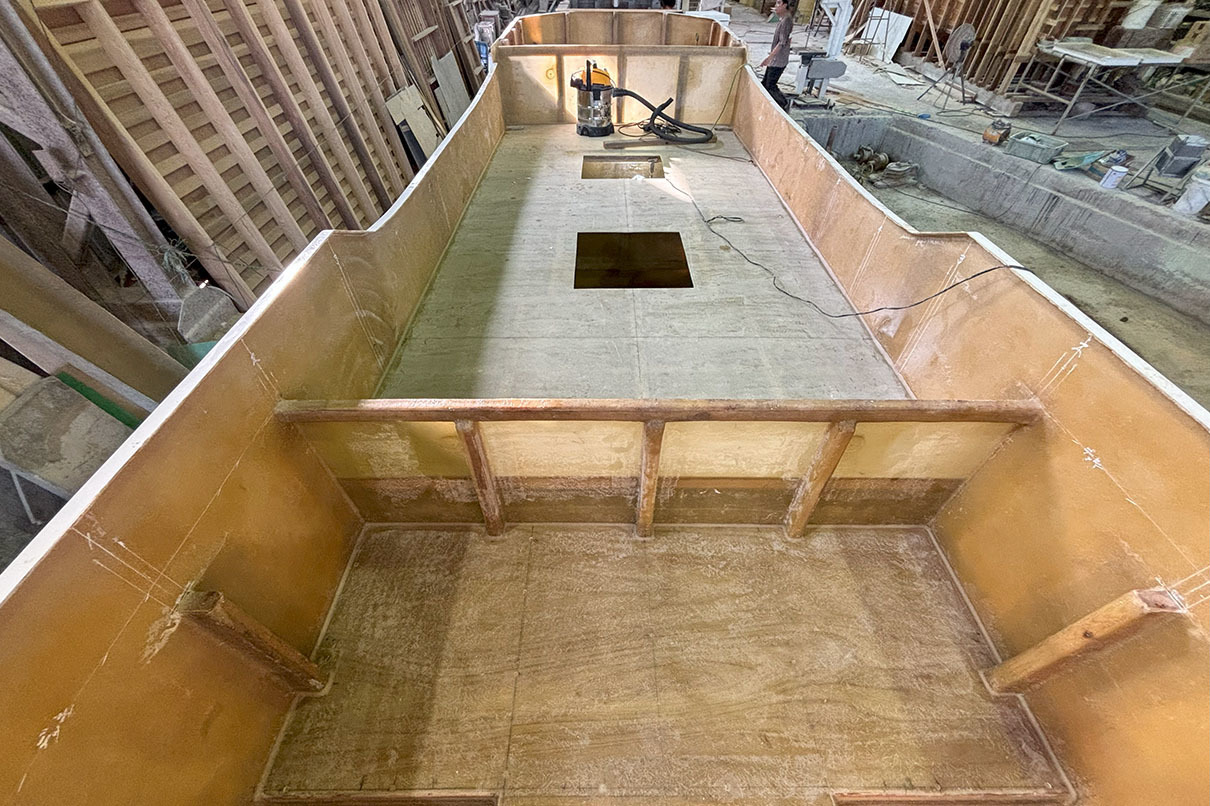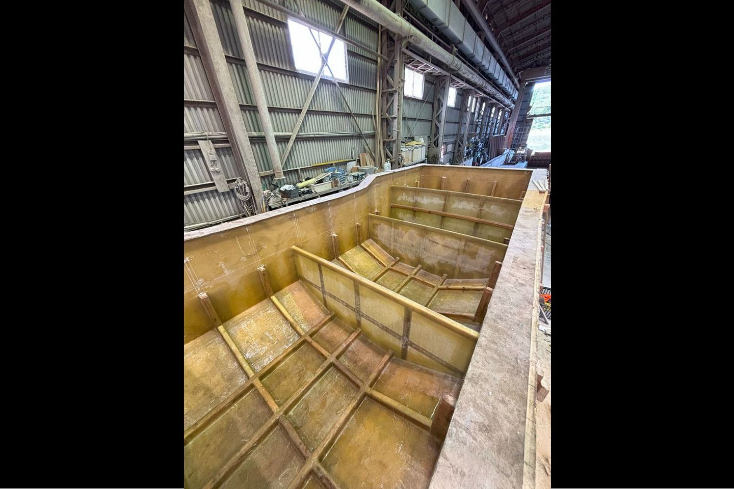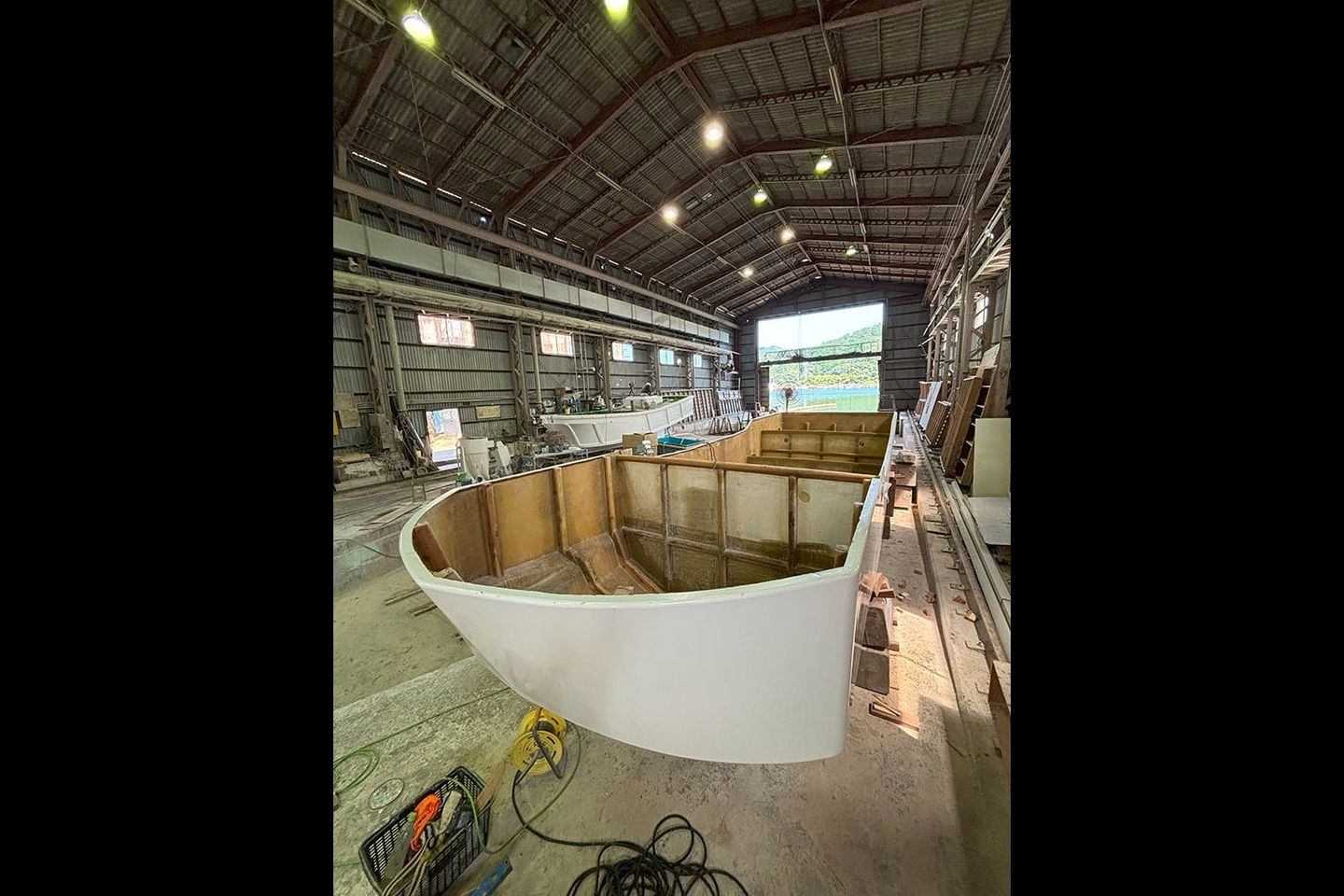2024年 ロボット漁船7m実証機 -Robo Sailing ZERO- の製造 きりゅう造船にて製造 型製造中 型製造中 ゲルコート ゲルコート塗付 ゲルコート塗付 積層 積層 積層 脱型 脱型 脱型 内装 餌箱 内装 ストラット ストラット ストラット バッテリー デッキ 操舵機 スラスター Robo Sailing ZERO MEMORYに戻る。