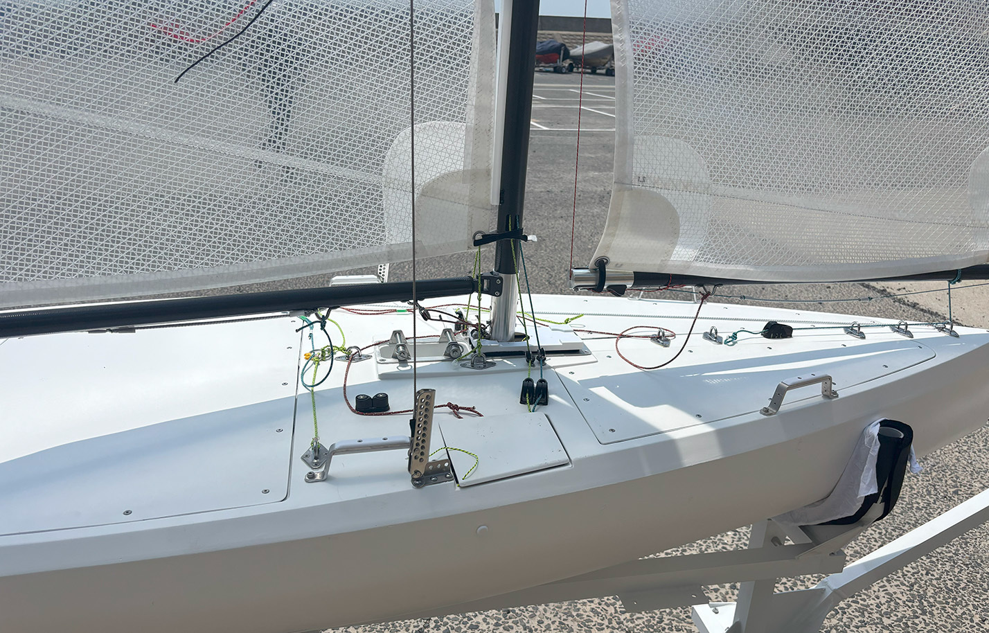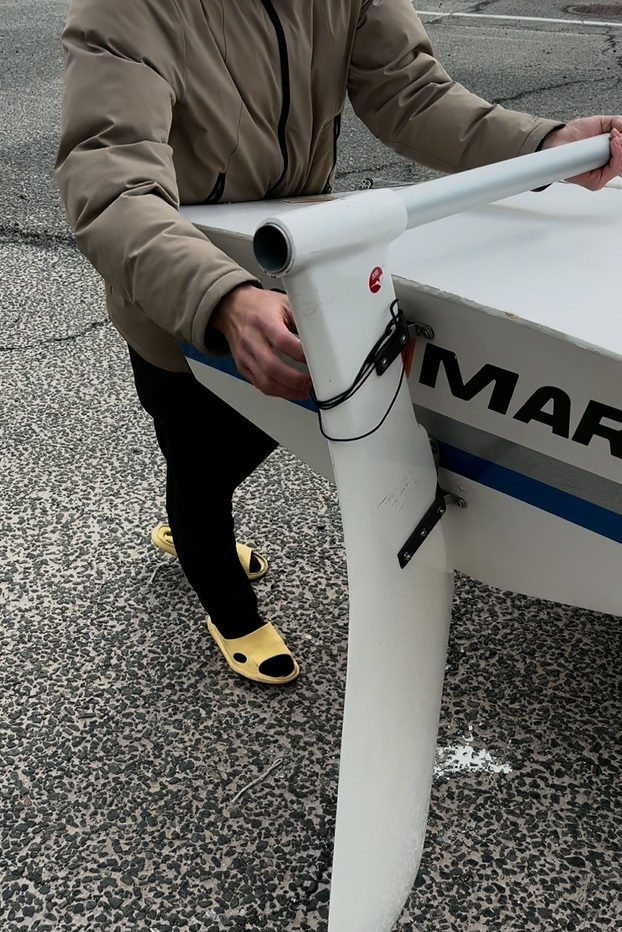 既にセーリングヨットの艤装品は様々に開発されており多くの良いものが販売されています。詳細設計するに際して大阪公立大学体育会ヨット部の備品を見学させてもらいました。ちなみに大学生の競技ヨットは470級とスナイプ級という艇種があり競われています。今回、我々が製作するヨットは2mと、470級やスナイプ級よりは一回り小さいものになります。