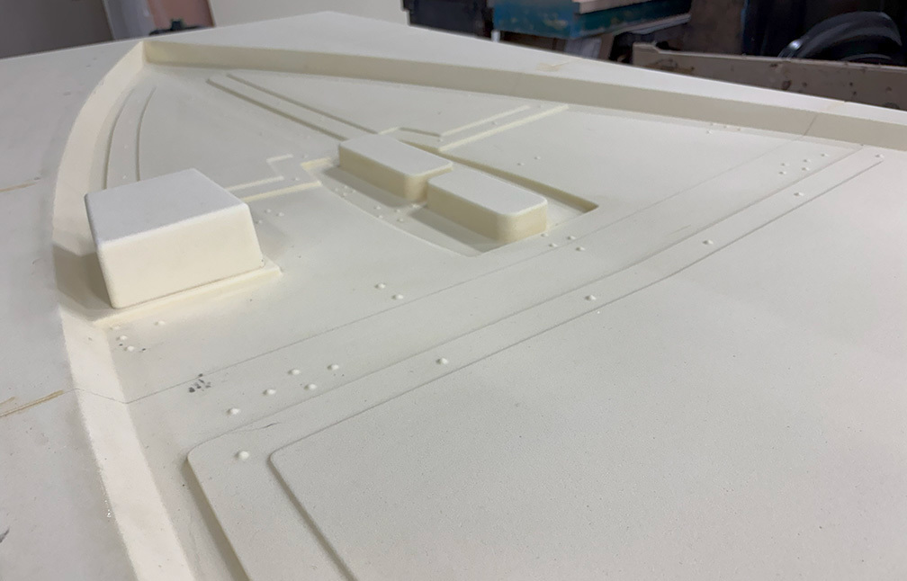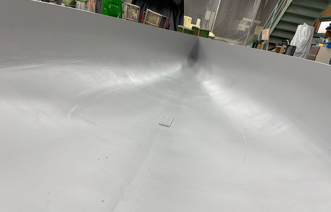材質はFRPとします。製作に向けては型設計、治具等も設計しています。