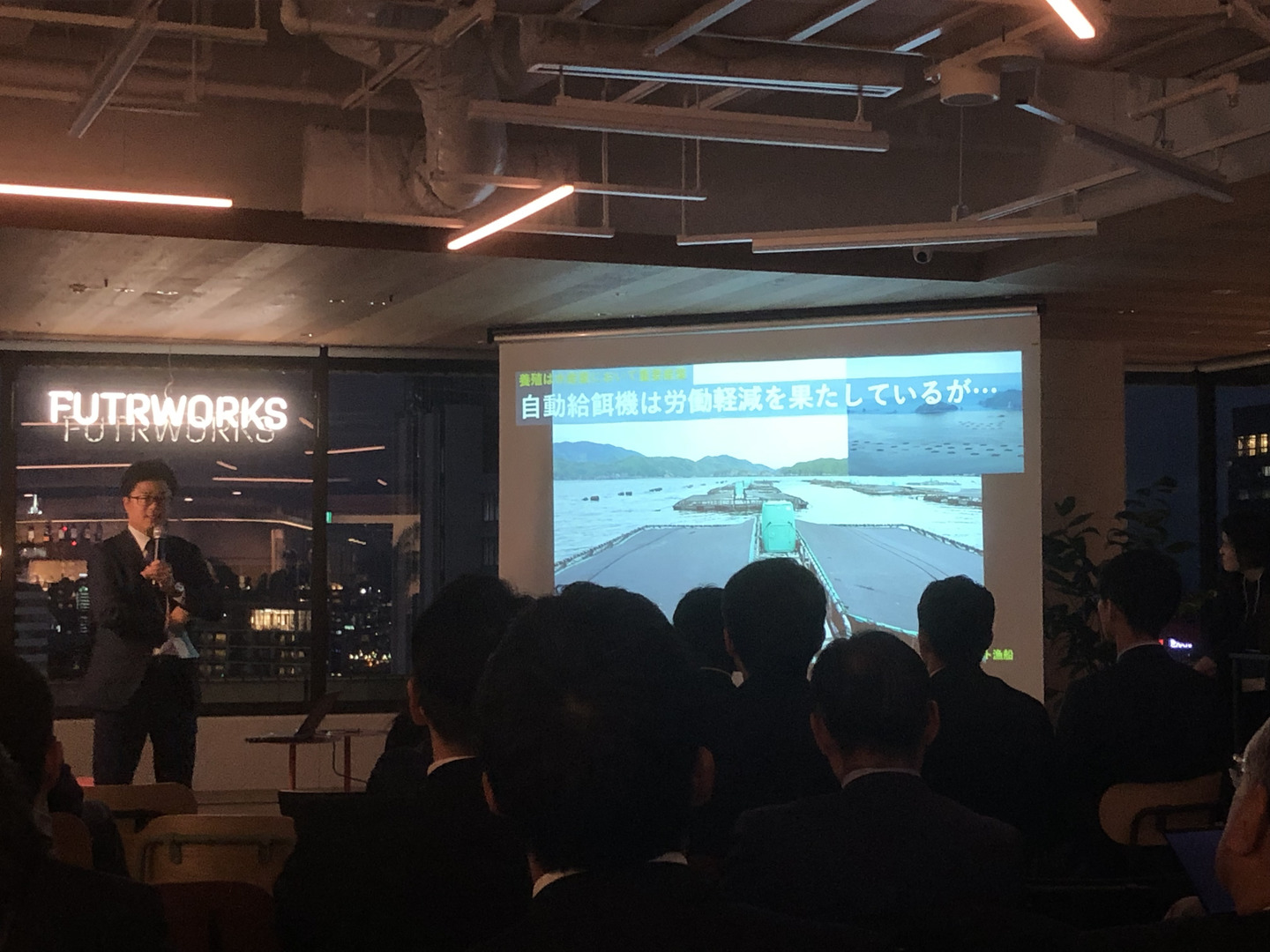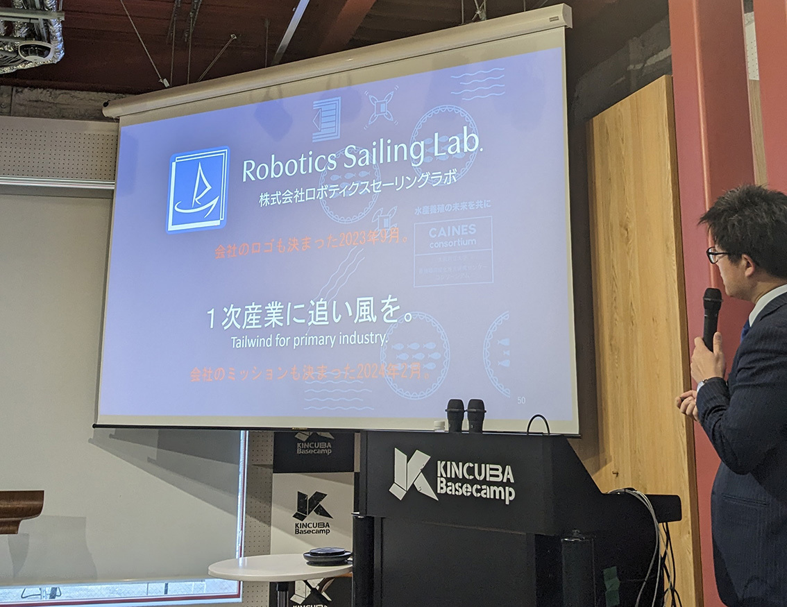 大学発スタートアップということで、(株)ロボティクスセーリングラボの起業、これまで携わってきた社会実装の話、立ち上げた大阪公立大学養殖場高度化推進研究センターの話をさせてもらいました。